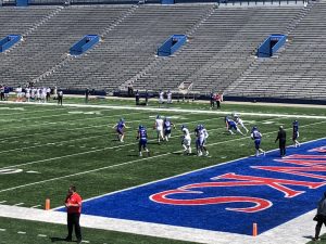 Nevertheless, the Spring “game,” if you want to call it a game, was simply a practice and short live scrimmage for Kansas. The Jayhawks at the present time simply lack the depth on their roster to actually have what other programs would consider a conventional spring game. Since the practice only lasted about an hour and a half or so, it was difficult to pick out standout players as the coaches were constantly changing out personnel. This most likely was due to the lack of depth facing the Jayhawks’ team at the present time.