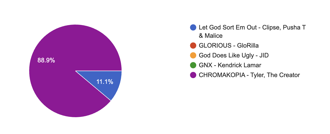 To absolutely no one’s surprise, our pick for Best Rap Album is CHROMAKOPIA. Throughout his career, Tyler has made a habit of consistently outdoing his previous releases, and this album is no different. Between hard-hitting beats, ballads that pull on the heart strings, and Tyler’s incredible writing skills, this album objectively places itself as his magnum opus.