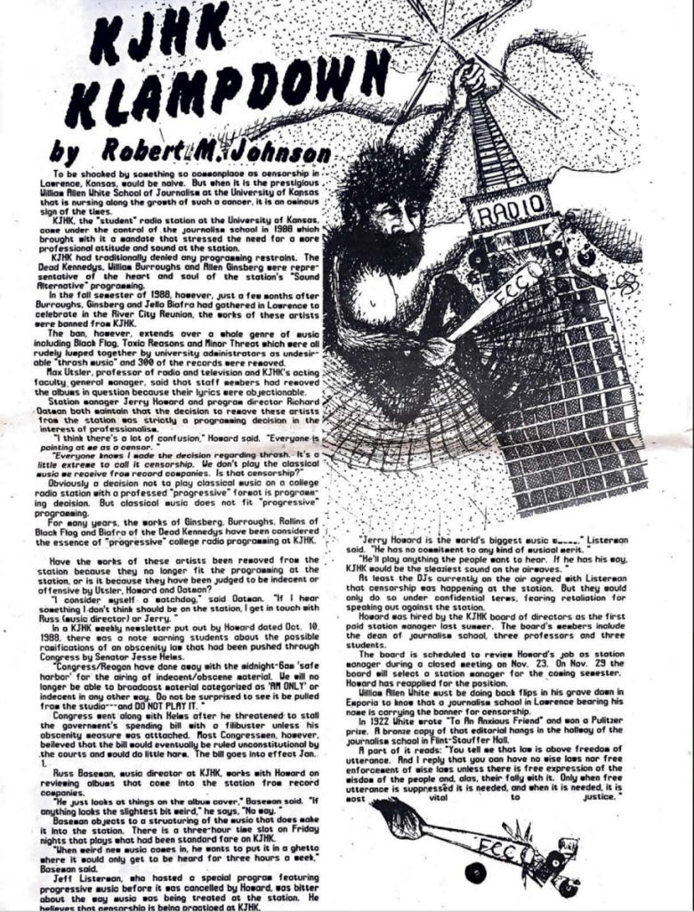 Journalism faculty takes control of KJHK to improve the station’s compliance with federal regulations, briefly ending student-led operations in June of that year. At student outrage and protests, control was finally given back to the students, where it has stayed since.